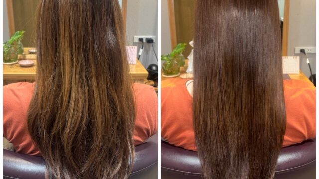 そこでディアーズでは、髪にあった優しい薬剤を調合し、根元を染めていきました。毛先には栄養分をしっかり補給していきました。