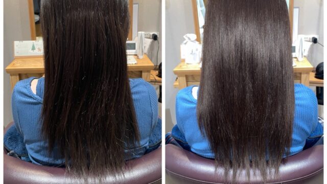 こちらのお客様は、クセで広がり全体的に艶のない事がお悩みでご来店されました。
